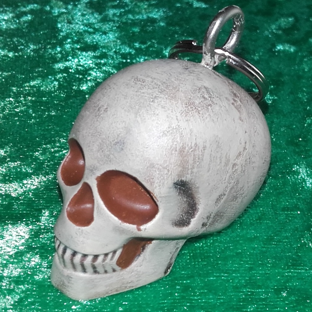 Handcrafted resin key ring, individually hand-painted – Bone colour with brown eyes